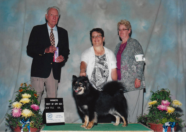 Quinn finishes her UKC Grand Championship! She was only 9 1/2 months old on 8/24/08 and as far as we know, is the youngest Finnish Lapphund UKC Grand Ch. in breed history!